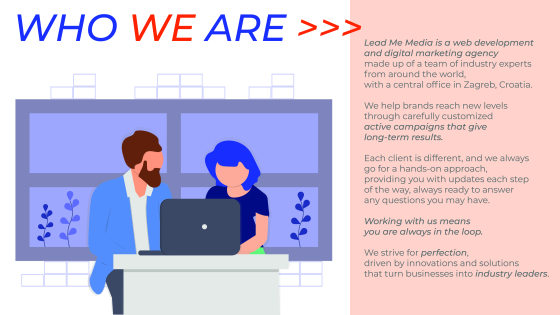 Imate li pitanje za Lead Me Media?Objasnite vaše ciljeve i zahtjeve ili zatražite dodatne informacije koje su vam potrebne kako biste donijeli odluku.